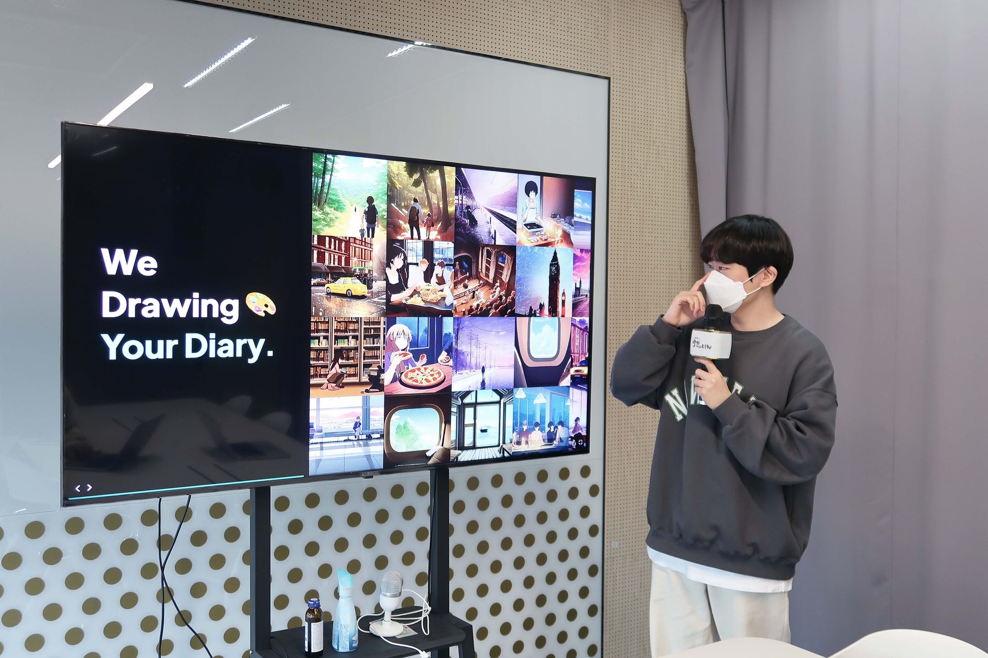'다이어리를 매일 쓰게 하려면 어떻게 해야 할까'를 고민하다가 시각적인 이미지를 활용해보기로 했어요. 하루를 간단히 기록하면 문장들을 AI가 분석해서 썸네일을 자동으로 만들어주고, 일기를 쓰는 재미를 느낄 수 있게 했습니다! 나중에는 이런 썸네일들이 사진첩처럼 쌓여서 이 날에 어떤 일이 있었고, 어떤 기분이었구나를 직관적으로 회상하게 해줄 수 있어요.