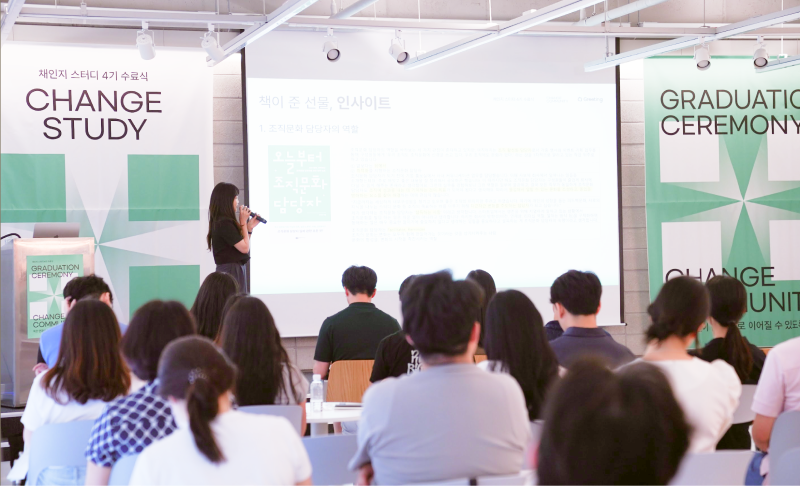 모든 스터디가 각자의 주제 영역에서 멋진 성장을 만들어내신 만큼 수료식을 통해 유종의 미를 거둘 수 있어 더욱 특별한 시간이었습니다. 계절이 두 번 변하는 동안 퇴근 이후의 시간을 할애하며 HR의 각 주제와 영역에 대해 깊게 고민하고, 인사이트를 압축적으로 전달해 주신 모든 채인지 스터디원분들에게 무한한 응원을 보내드립니다! 다시 한번 채인지 스터디 4기 수료를 축하드립니다!