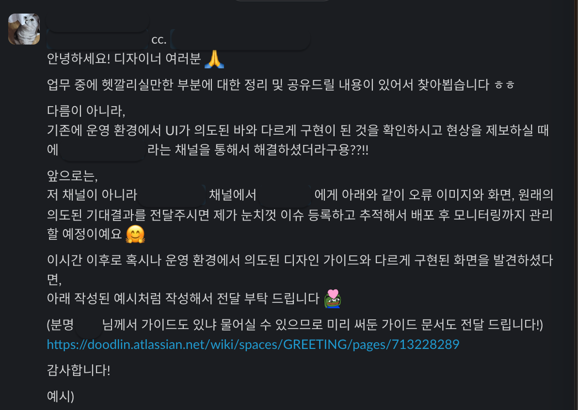 CX팀에서 토스하는 개선사항 또는 이슈들을 착착 받아내어 처리해주시는 모습이 너무 멋있고, 감사합니다! 최근에 QA와 CX가 유기적으로 연결되며 다른 업무들에 치여서 흐지부지된 개선사항들이 선명해지고 있는 것 같아요. 덕분에 제품이 조금씩 개선되고 있는듯해서 너무 좋아요.💬백엔드팀 :