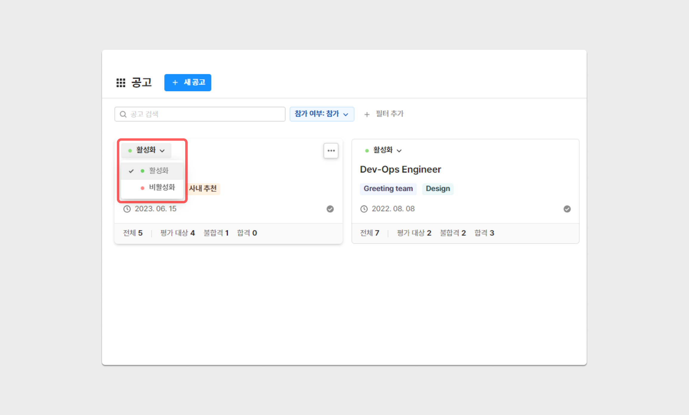 자유롭게 니즈에 따라 공고를 채용페이지에 게시 또는 미게시 여부 설정이 가능합니다. 채용페이지 게시/미게시 여부는 공고 생성/설정시 수정 가능합니다.
