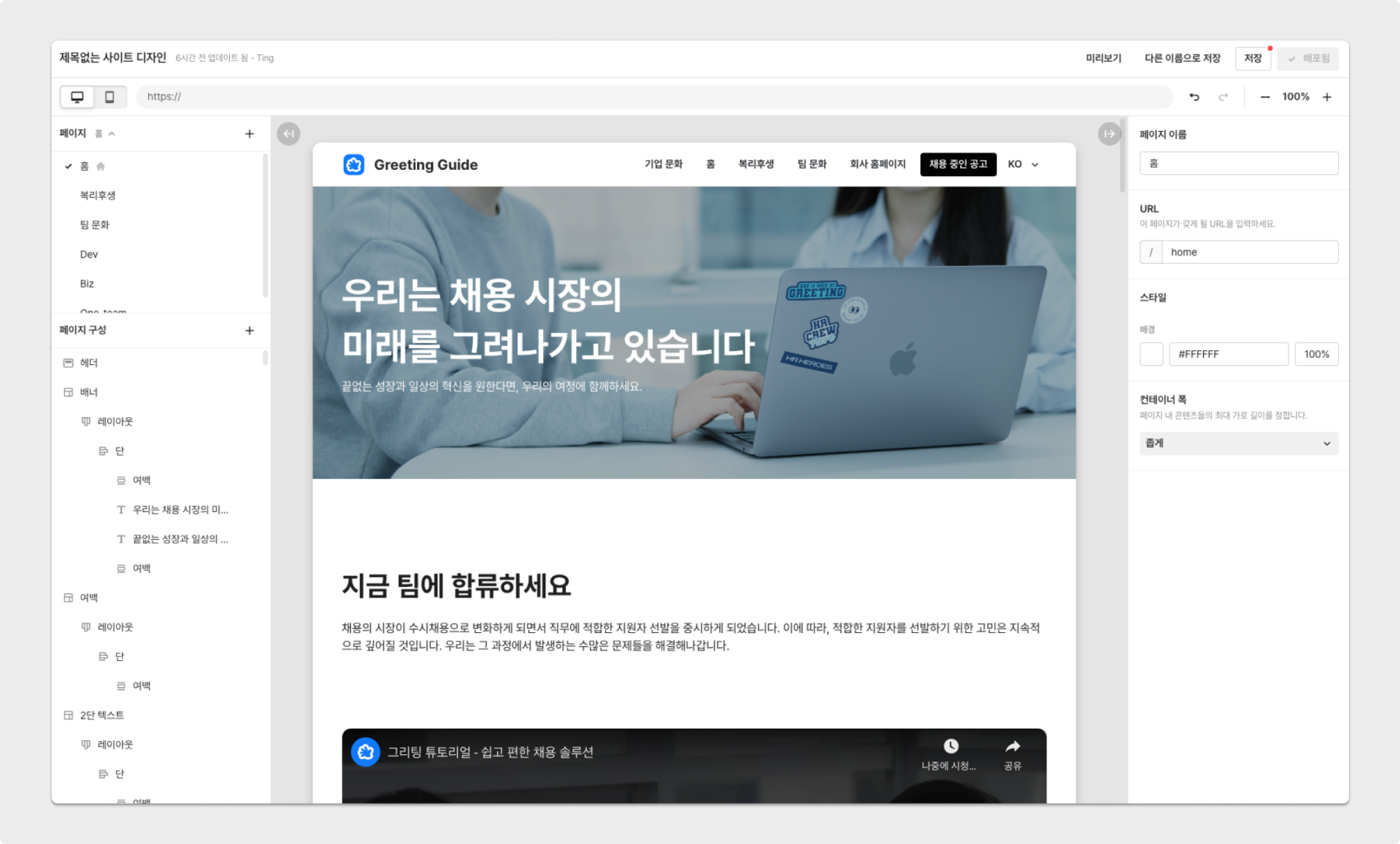 우리 회사만의 특색을 보여주는 채용 홈페이지, 그리팅으로 만들어보세요!