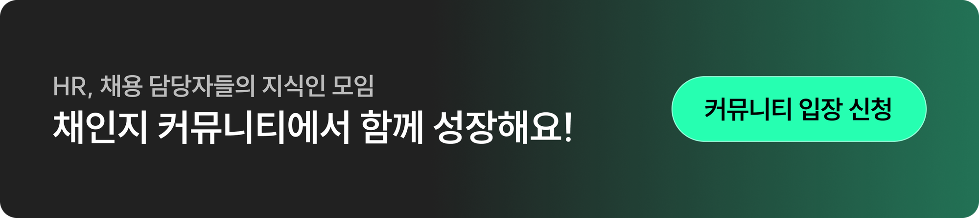 채용을 채용으로 보지 않았으면 좋겠습니다. 이면에 숨겨진 또 다른 의미를 보셨으면 좋겠습니다. 채용은 사람 뽑는 일을 넘어서 사람이 하는 일, 사람이랑 하는 일, 사람 때문에 하는 일이니까요. 마지막으로 이 글을 보는 모든 채담씨들께 묻습니다.
